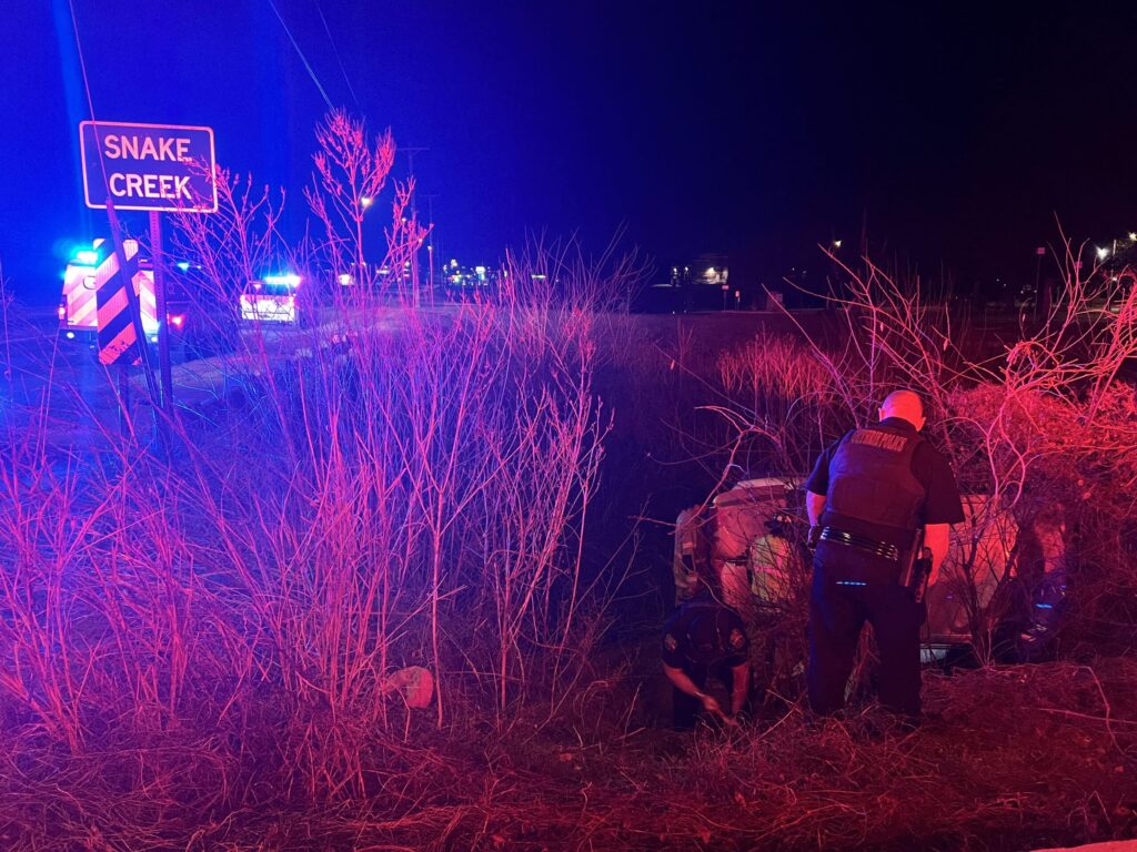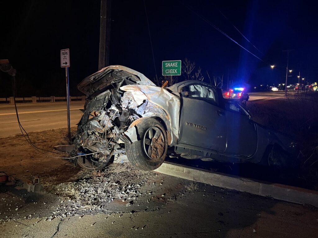 After a brief search of the area, officers located a silver four-door Nissan Titan that had left the roadway and rolled into a ravine near the creek along the north side of the park.