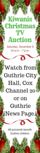 Kiwanis TV Auction October 15, 2018 TOP POSTS Logan County commissioners approve countywide burn ban Last lap at the Beacon: Final car show set as iconic drive-in changes hands Vehicle destroyed in fire behind Guthrie residence OBN targets two Logan County marijuana businesses in ongoing criminal investigations Driver injured in rollover crash near Broadway and Waterloo Logan County filings March 20, 2026 Logan County filings March 27, 2026 Logan County filings March 26, 2026 Logan County filings March 25, 2026 Logan County filings March 23, 2026