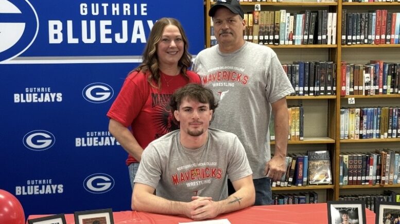 Guthrie High School senior Luke Lyons signed to continue his wrestling career at Northern Oklahoma College on April 7 inside the Guthrie High School library. Lyons was joined by family, coaches, teammates, and friends for the celebration.