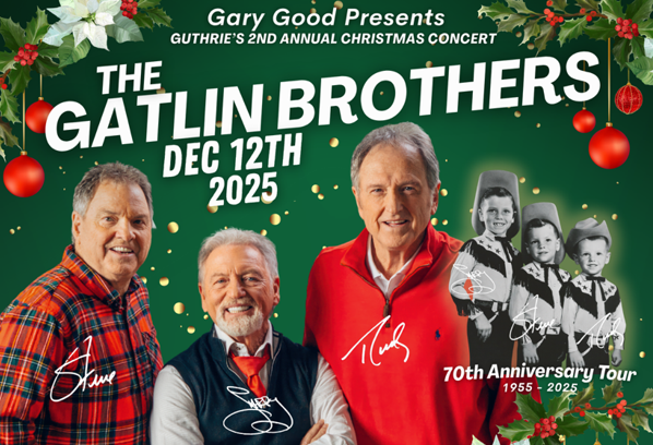 The Gatlin Brothers are returning to Guthrie for the second consecutive year with a special Country and Christmas concert set for Thursday, Dec. 12, inside the historic Guthrie Scottish Rite Masonic Temple.